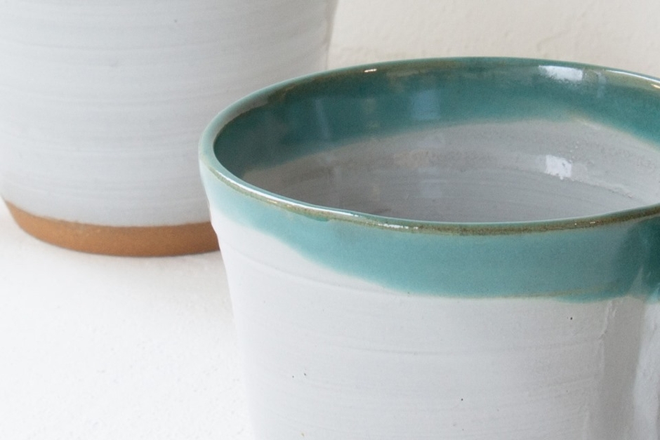 本製品を手掛けた谷製陶所は、明治時代から続く高知を代表する尾戸焼の窯元です。5代目・谷 信一郎氏は、工房の裏手にそびえる能茶山から自ら土を掘り出し、1ヶ月半もの時間をかけて精製する昔ながらの「土づくり」を今も貫いています。自ら精製した「藁灰釉(わらばいゆう)」が織りなす乳白色と口元に配した緑釉の柔らかな表情、その下にうっすらと見える細かな貫入(釉薬のヒビ)は、土佐の清流や自然を思わせる温かみと透明感を併せ持っています。