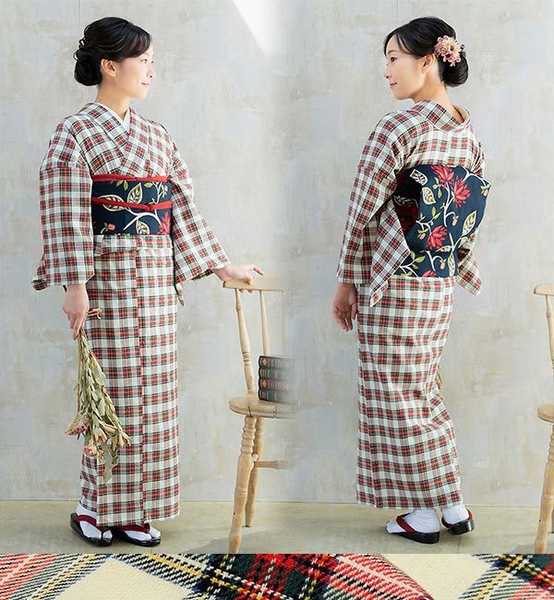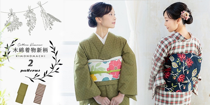 京都きもの町オリジナルの木綿着物に新柄登場。無地感覚で合わせやすい抹茶七宝と洋服感覚で着られるロイヤルタータンの2柄。着付けの練習やちょっとしたお出かけに最適。日本製でご自宅でお手入れ可能な綿100%。