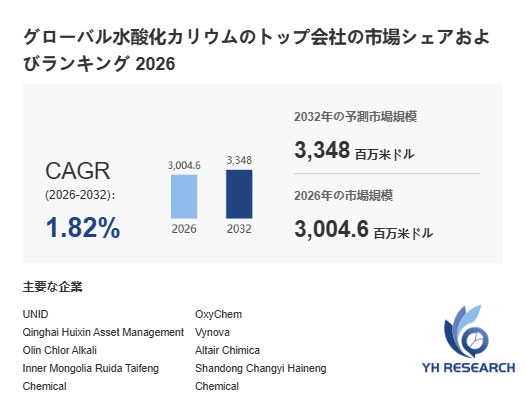本記事は、YH Researchが発行したレポート「グローバル水酸化カリウムのトップ会社の市場シェアおよびランキング 2026」 を紹介しています。