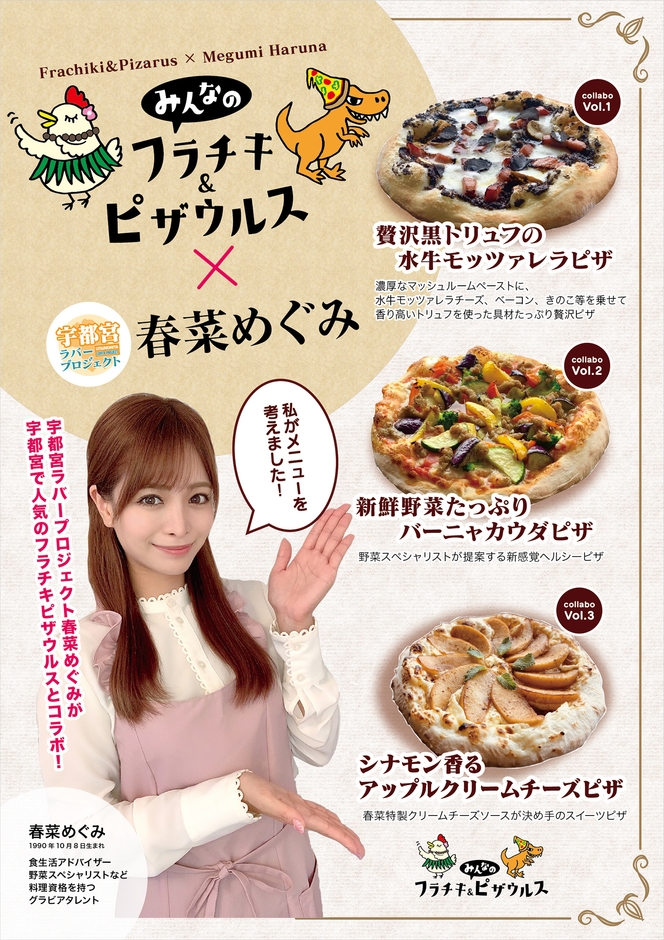 みんなのフラチキ&ピザウルスとコラボで春菜めぐみ考案のピザが新登場