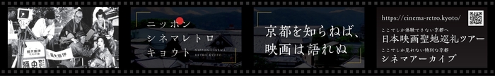 WEBサイト「ニッポン シネマレトロ キョウト」は、京都市内にかつてあった撮影所や時代劇映画のロケ地、往年の時代劇スターが登場する京都で撮影された映画の一部動画の紹介など、「映画都市・京都」の全貌を知ることができ、「日本映画 聖地巡礼ツアー」の購入もできるサイトです。