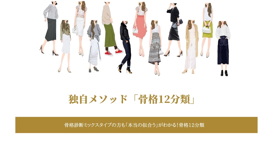 従来の骨格診断ではストレートタイプ・ウェーブタイプ・ナチュラルタイプの3つに分類されます。当然人の似合う傾向は3つに分類されるほど単純ではなく「骨格診断でどれも当てはまらないと感じた」「診断されたタイプに納得感が持てなかった」と言う声が多く聞かれました。3タイプを更に細分化した「骨格12分類」により「骨格診断」での迷子状態が解消されます。