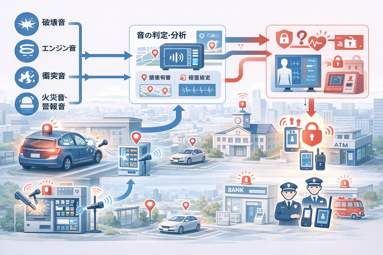 ● 何が :破壊音・連続衝撃・始動音で推定し自動通報