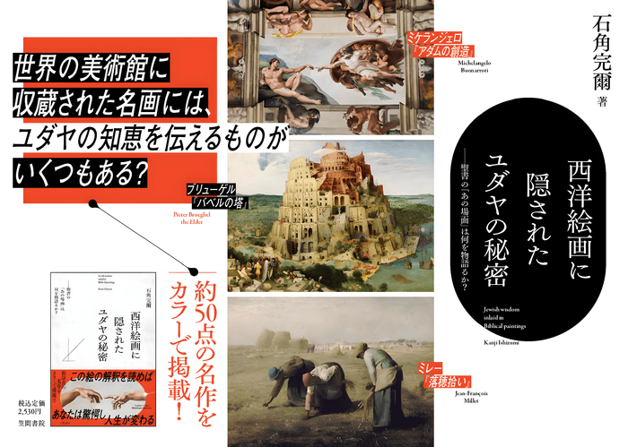 旧約聖書の物語から人生訓、処世術、仕事術などをユダヤ人がどのように学び取っているか、ベストセラー『ユダヤ人の成功哲学『タルムード』金言集』(集英社)の著者でもある石角さんがわかりやすく、ミケランジェロ、ルーベンス、レンブラント、ミレーなど名だたる芸術家による名画解説から伝える1冊です。