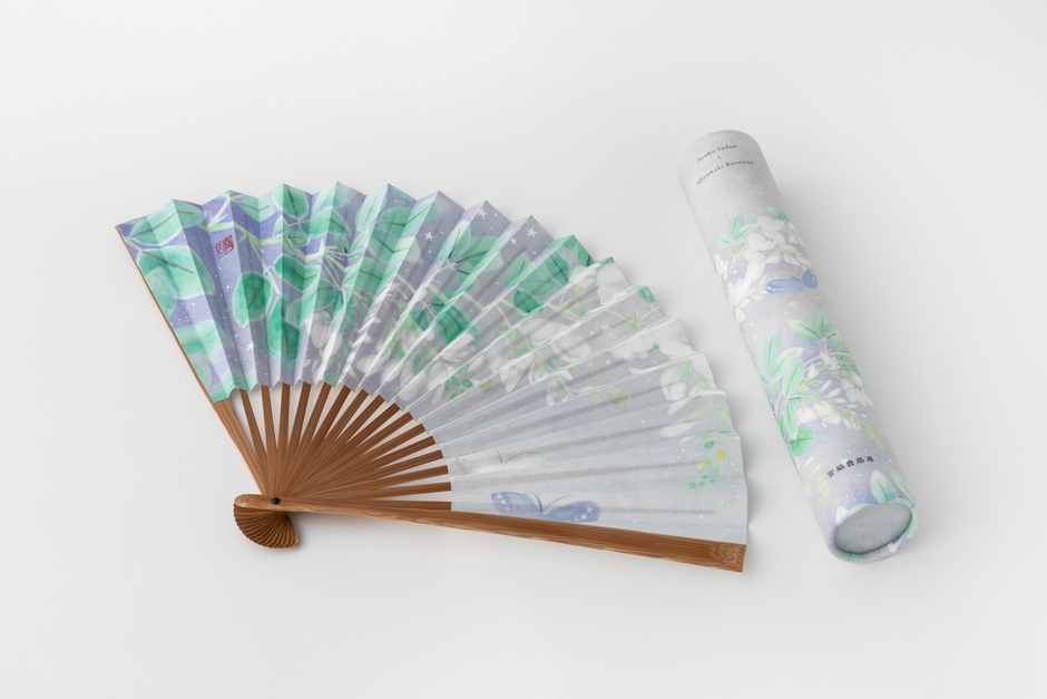 京扇子の老舗、株式会社宮脇賣扇庵(所在地:京都市中京区、代表取締役:南 忠政)は、いま注目の女性日本画家、定家 亜由子氏の描きおろしの原画がデザインされた美麗なコラボレーション扇子 第3弾「月のこもりうた-あき-」を発売いたしました。