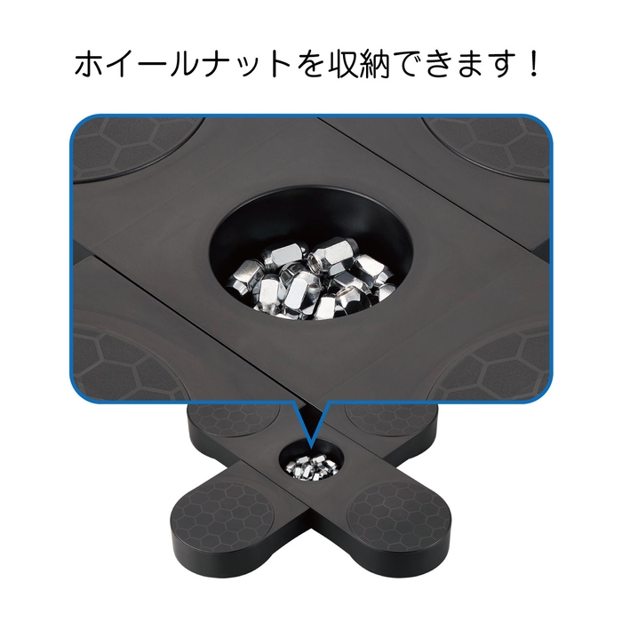 製品本体の中央部にくぼみがあので、ホイールナットなどの小物を収納することができます。
