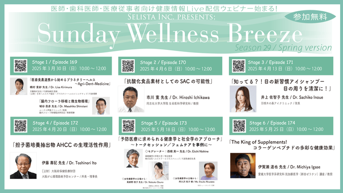 Selista Inc. Presents.『Sunday Wellness Breeze』 Season 29 Spring version 全6 Stage 2025年3月30日(日)~5月25日(日)の日曜日の朝に開催