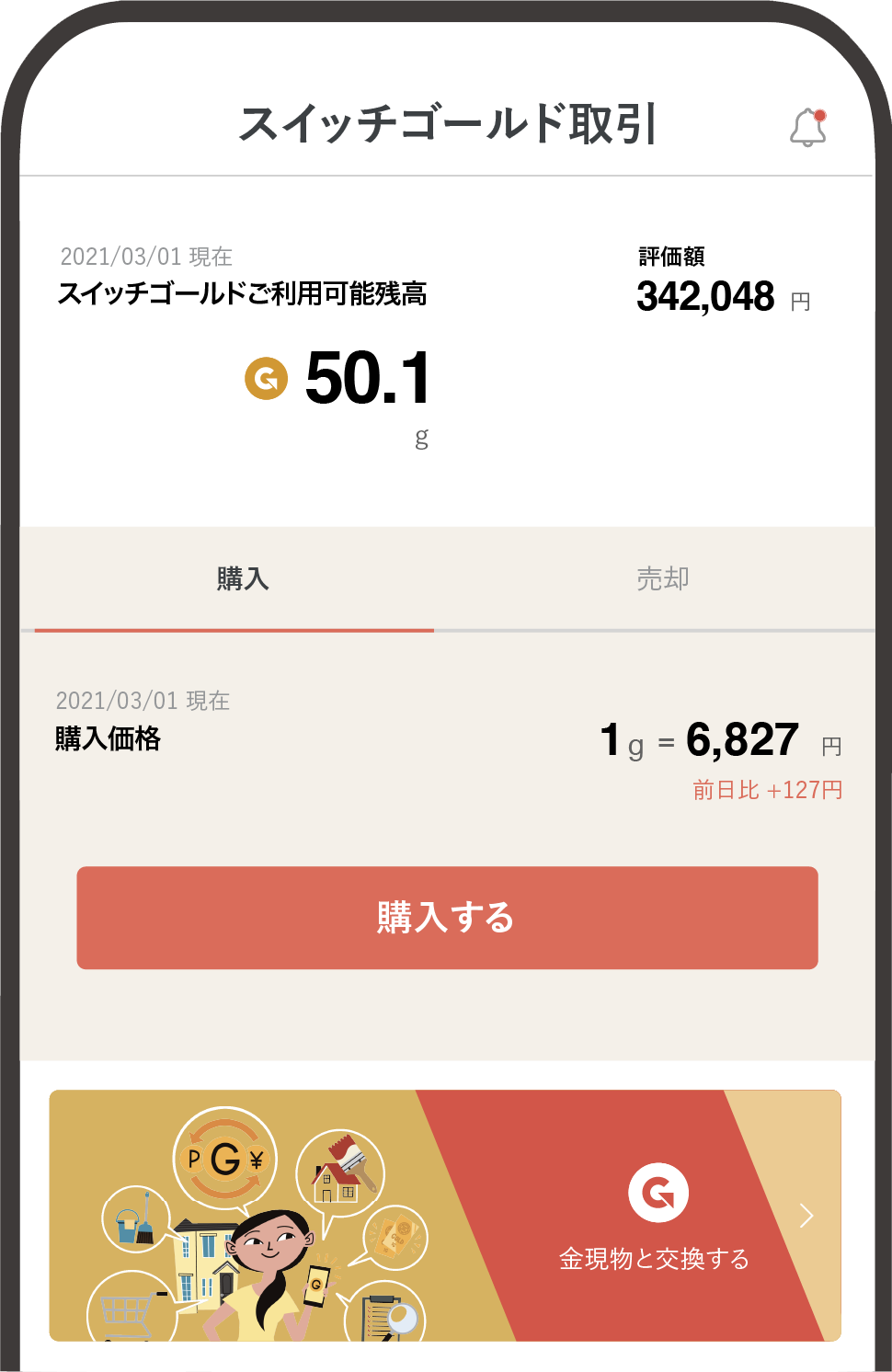 アプリを使えば、電子ゴールドのレートや保有額の動きを楽しみながら、お財布まわりが、ますます便利になります。ぜひダウンロードして、その手軽さを実感してください。