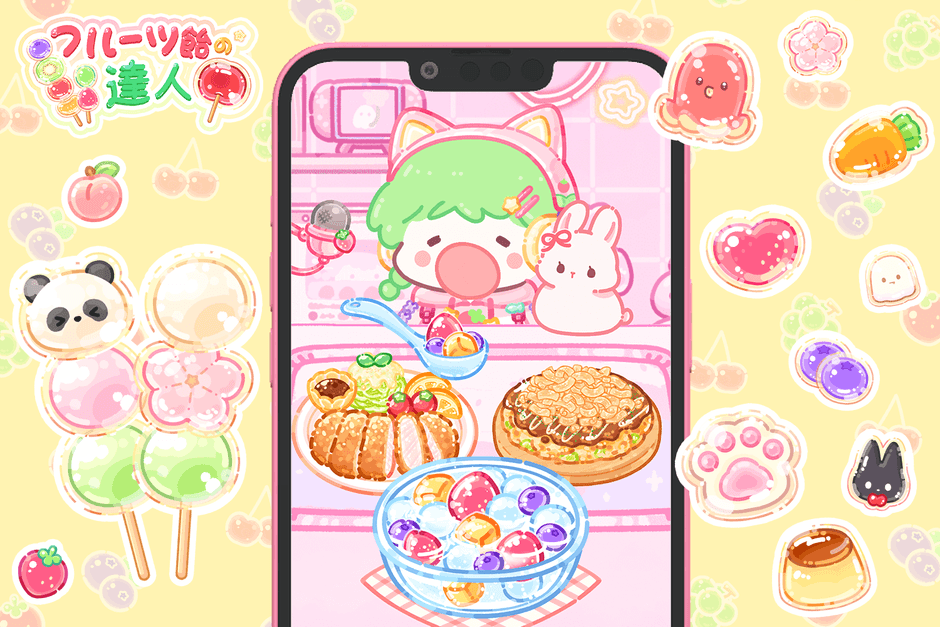 2023年9月に韓国で初めてサービスを開始した「フルーツ飴の達人」は、最近日本と韓国で流行っているデザート、“フルーツ飴”をテーマにしたゲームです。「フルーツ飴の達人」は、プレイヤーが様々な果物で自分だけのフルーツ飴を作り、フルーツ飴を「モッパン」をしながら、自らが動画クリエイターになる体験が出来る新感覚ASMRゲームです。現在は全世界でDAU100万人を獲得するなど、多くのユーザー様に愛されています。