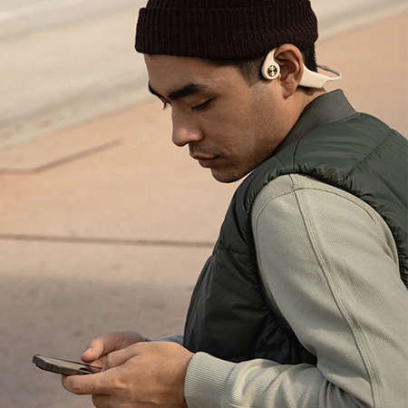 お気に入りのプレイリストを聴きながらも、日常に行き交うさまざまな環境音が自然と耳に入ってくる、オープンイヤーテクノロジーの世界。聴きたいサウンドをあなたの耳にバランス良く届けてくれるのが、骨伝導イヤホンです。ランニングしながら、仕事をしながら、家事をしながらなど、マルチタスクを簡単に叶えながら、聴こえないことの不安を取り除く「ながら聴き」を可能にします。