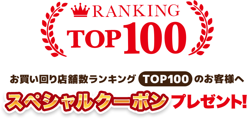 お買い回りの店舗数が上位100位以内のお客様に、スペシャルクーポンをプレゼントいたします。
