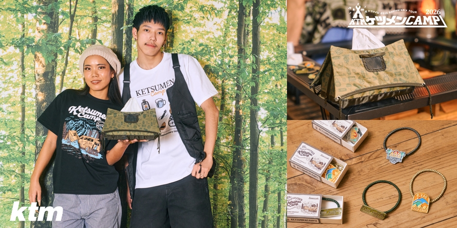 ケツメイシのデビュー25周年を記念した全国ツアー『ケツメイシ 25th Anniversary TOUR ケツメンCAMP 2026』の開催に先立ち、ツアー公式グッズのラインナップが本日公開され、CLUBケツメイシ会員限定の先行通販がスタートしました。キャンプをテーマにした実用的かつデザイン性の高いアイテムが多数登場し、ライブやアウトドアシーンでも活躍するグッズが揃います。
