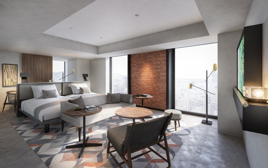 スーペリア、スーペリアプラス、プレミアムの3カテゴリー(全436室)。内装はスタイリッシュなデザインのなかにも北海道・札幌の自然・文化・歴史等が感じられるインテリアや照明演出、空間デザインを取り入れます。最上階の18階には、プレミアムカテゴリーに滞在するお客さまが無料で利用できるラウンジの他、サウナ付温浴施設、ルーフトップテラスを備え、朝・昼・夜、それぞれに札幌の眺望を楽しみつつ、特別なひとときをお過ごしいただけます。