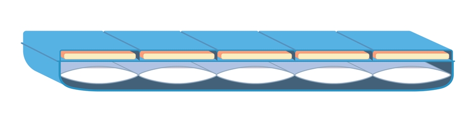 - 患者に接触する上部は薄く柔らかい高機能ウレタン層、手術ベッドと接触する下部は陰圧ビーズ層の二層構造になっています。