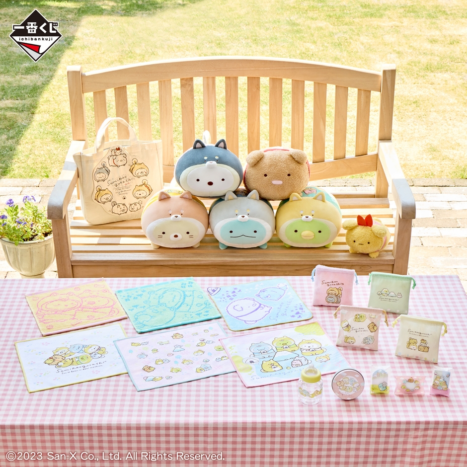 本商品は、「すみっコぐらし」のストーリーの1つ「こいぬといぬごっこ」をテーマにした一番くじです。ぬいぐるみをはじめ、トートバッグ、巾着など実用アイテムも多数ラインナップしました。