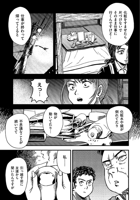 プロによる盗聴・盗撮調査には3種類の結末がある。1つは住人のプライバシーを侵す悪意ある盗聴・盗撮機器が発見される結末。2つめは住人の気のせいや考えすぎだった結末。そして3つめは盗聴や盗撮ではなく住人の勘違いでもない結末。全体の3パーセントに上るプロでも正体が分からない怪現象を戦慄コミカライズ!!
