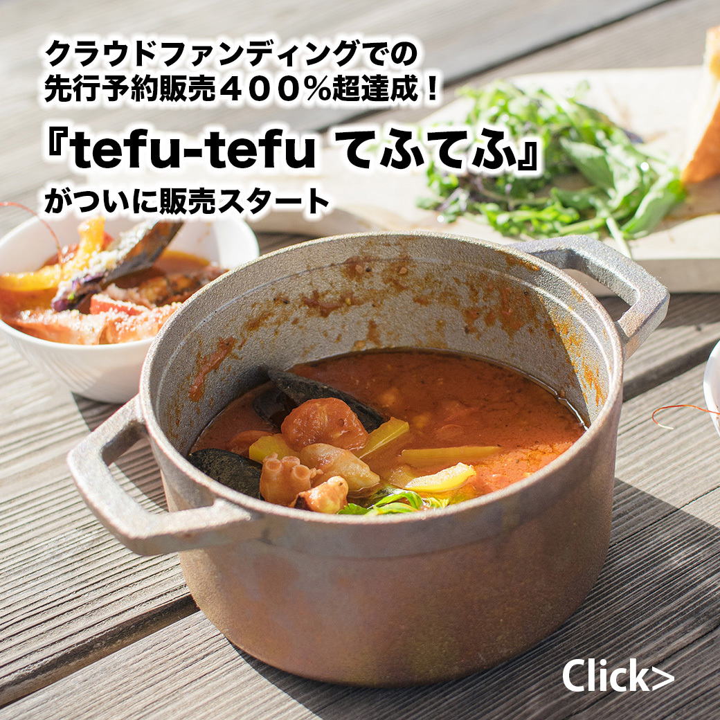 プロの調理道具をご家庭でも扱いやすく、簡単に美味しい料理が作れる、銅合金製鋳物鍋「tefu-tefu てふてふ」をこの機会にぜひご利用ください。