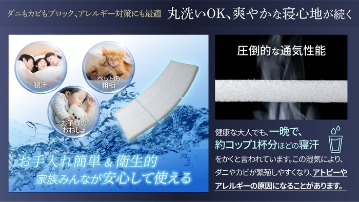 【丸洗いOK!通気性抜群で、いつでも清潔に】