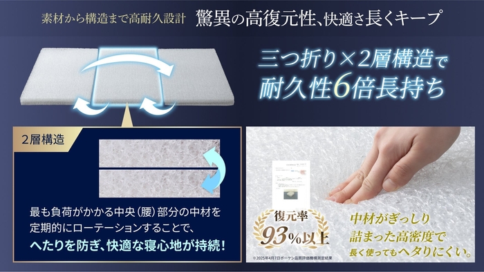 【6倍長持ち耐久性&高復元性で、快適な寝心地がずっと続く】