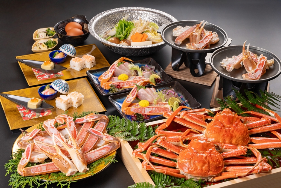 日本海に近い城崎温泉ならではの新鮮なズワイガニを、1人あたり2杯分使った贅沢なカニコース料理です。