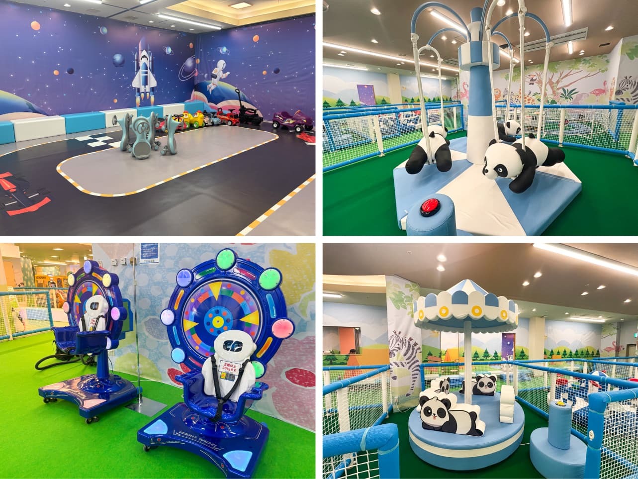 ドライブを楽しめるカートコーナーや、パンダメリーゴーラウンドなど楽しい乗りものが大集結!