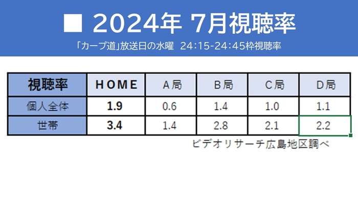 (※)「カープ道」放送日の(水)24:15-24:45枠視聴率