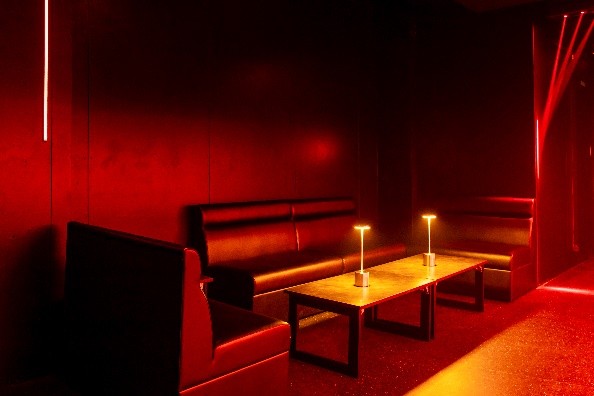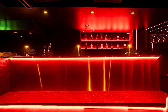 一歩足を踏み入れると、空間全体は黒を基調に設計され、バーエリアは深紅に包まれたデザイン。