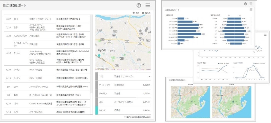 本サービスは、今まで大容量かつ継続的なデータ収集や多くの分析リソースが必要だった「競合を含む店舗の動向・影響把握」を、容易かつビジュアルで分かりやすくタイムリーに提供することで、手間をかけることなく根拠に基づくロジカルなマーケティング分析を可能とします。
