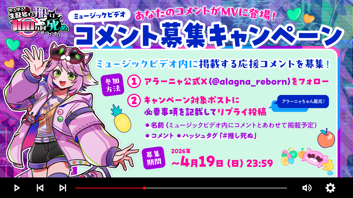 株式会社SCRAP(本社:東京都渋谷区、代表:加藤隆生)および株式会社ヴェルクス・スタジオ(本社:東京都渋谷区、代表:五十嵐翔)は、共同開発した自宅で遊べるリアル脱出ゲーム最新作『ゆるゆる生配信する推しは100万回死ぬ』において、テーマソングおよびミュージックビデオの制作を決定しました。また、ミュージックビデオに掲載されるコメント募集企画を実施いたします。