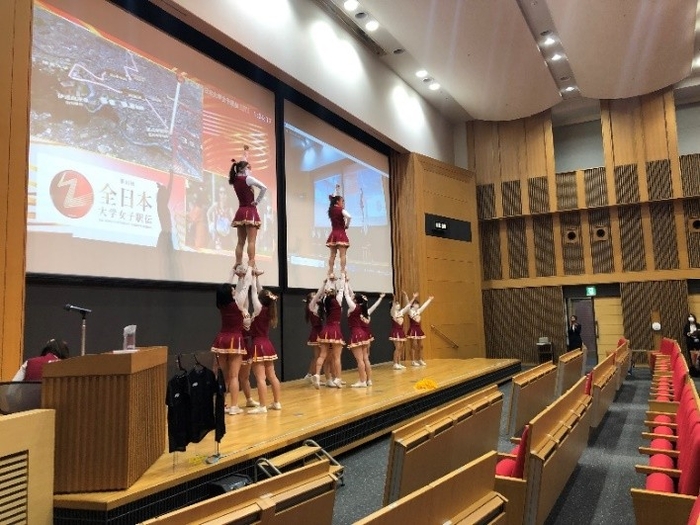 第43回全日本大学女子駅伝対校選手権大会が10月26日、宮城県仙台市で開催され、本学女子駅伝部は王座奪還を目指して走ります。レースの時間帯に本学天白キャンパスでパブリックビューイングを実施します。当日は、大型スクリーンでレースを観戦しながら、應援團の吹奏楽部やチアリーディング部、参加者全員で開催地の仙台に向けて声援を送ります。また現地スタッフとZoomをつなぎ、テレビでは見られないレースの裏側も投影する予定です。