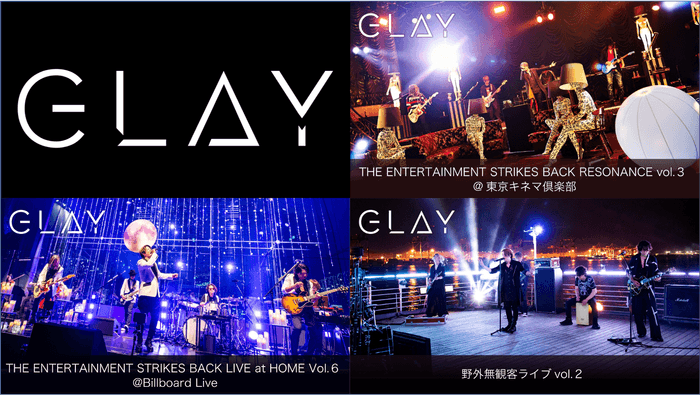 2021年に舞浜アンフィシアターを皮切りに全4ヶ所で行われた「THE ENTERTAINMENT STRIKES BACK」のライブ、船上で撮影された「野外無観客ライブvol.2」、7月31日に行われた「GLAY×THE PREMIUM MALT'S The Premium Live」となります。この中から第1弾として東京キネマ倶楽部で行われた「THE ENTERTAINMENT STRIKES BACK RESONANCE vol.3」、Billboard Liveで行われた「THE ENTERTAINMENT STRIKES BACK LIVE at HOME Vol.6」、船上からの「野外無観客ライブ vol.2」の配信を2022年1月7日(金)より開始いたします。また、2022年2月4日(金)には舞浜アンフィシアターで行われた「THE ENTERTAINMENT STRIKES BACK魁☆照男達」LINE CUBE SHIBUYAで行われた「THE ENTERTAINMENT STRIKES BACK LIFETIME MUSIC」Zepp Dive Cityでの 「GLAY×THE PREMIUM MALT'S The Premium Live」の配信を予定しております。