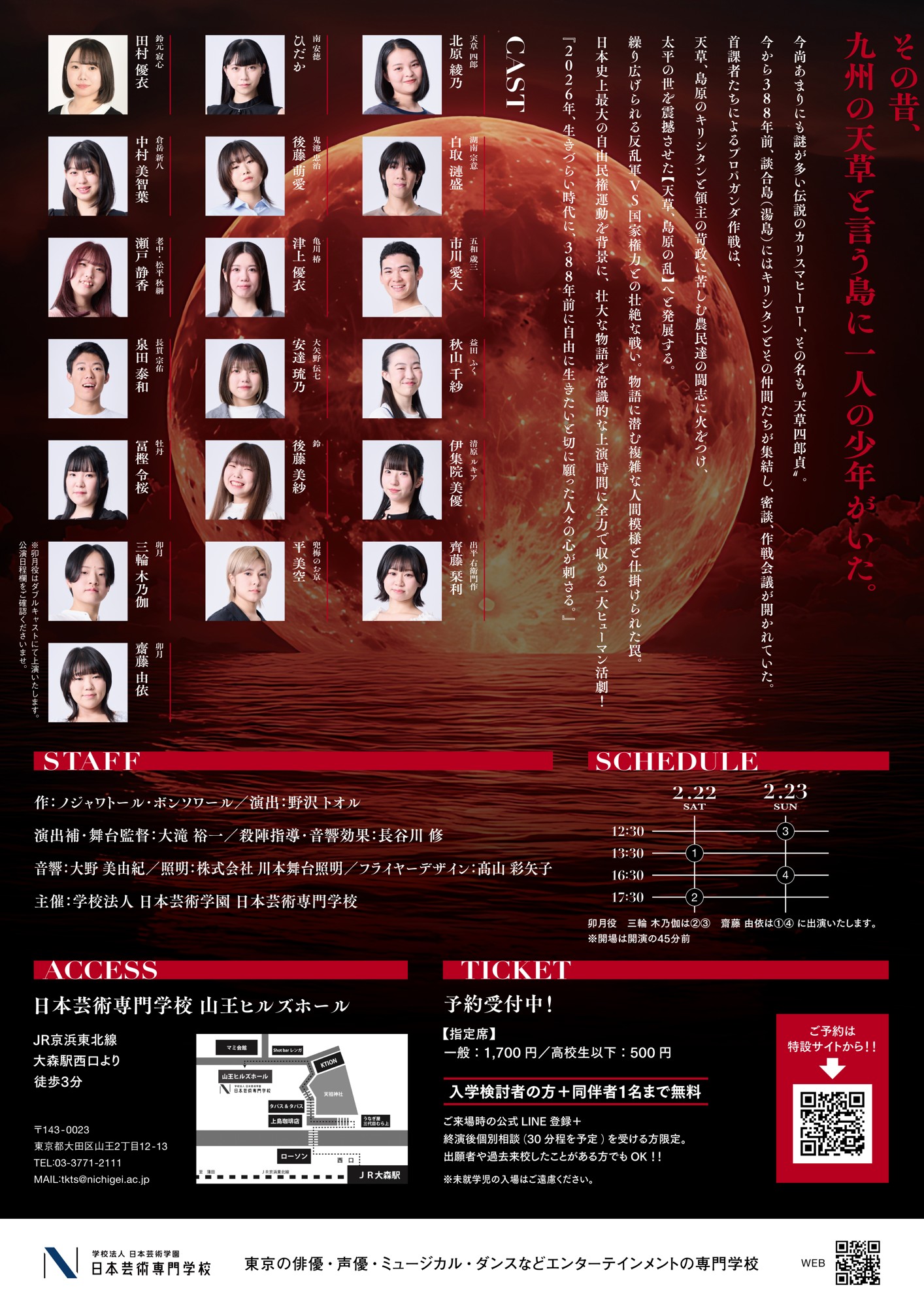 日本芸術専門学校は、2026年2月に山王ヒルズホールにて、天草四郎と[天草、島原の乱]の激動を描いた舞台『パライソの海―小さな花の夜露に映る月―』を上演するにあたり、この度、本公演のビジュアル解禁をいたします!