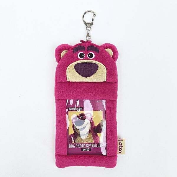 こちらは、 ロッツォ ボアフォトキーホルダーです。ボア生地がふわふわと心地の良い肌触りです。お気に入りのカードや写真を、ディズニーのキャラクターたちで可愛くデコレーションができさらにテンション上がりそうです。