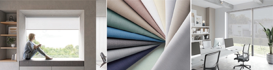 新たな多配色無地シリーズや、遮光生地、広幅対応生地の充実、品の良いテクスチャー生地やコラボレーション柄などで、生地を大幅にリニューアルしました。メカは、特殊窓にも対応できるよう、標準タイプで幅高さ比1:4に対応。ミニマルタイプの拡充やウエイトバーの形状変更、新部品色の追加、木目調フロントカバー(オプション)など、様々な空間になじむ洗練されたデザインに進化しました。