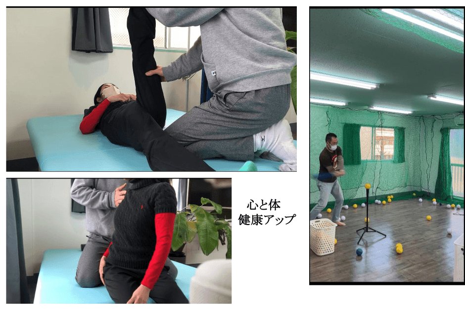 当サロンの特徴は理学療法士によるマンツーマンの施術と、硬式野球歴14年の元球児によるトスまたはティーバッティングexを取り入れているところです。バッティングexを運動療法の一つとして取り入れているジムや施設は今のところどこにも見当たりません。(※)
