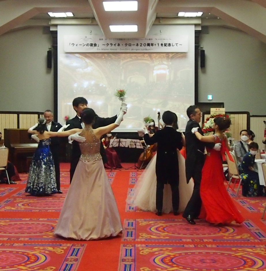 女性はイブニングドレス、男性は蝶タイで正装し、オーストリアのワインや料理、ウィンナーワルツを楽しんで頂く、しかも、踊れなくても楽しめる場となっています。