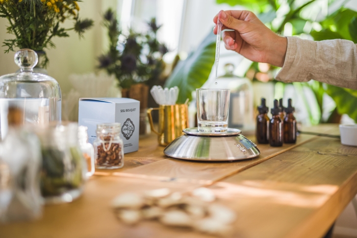 Aice(Aice Bergholmはアモルンの共同創設者です(co-founder))は以前、沖縄へ旅行をした時に、日本の文化・島の空気やそこに茂る花の香りに強いリスペクトを覚えました。