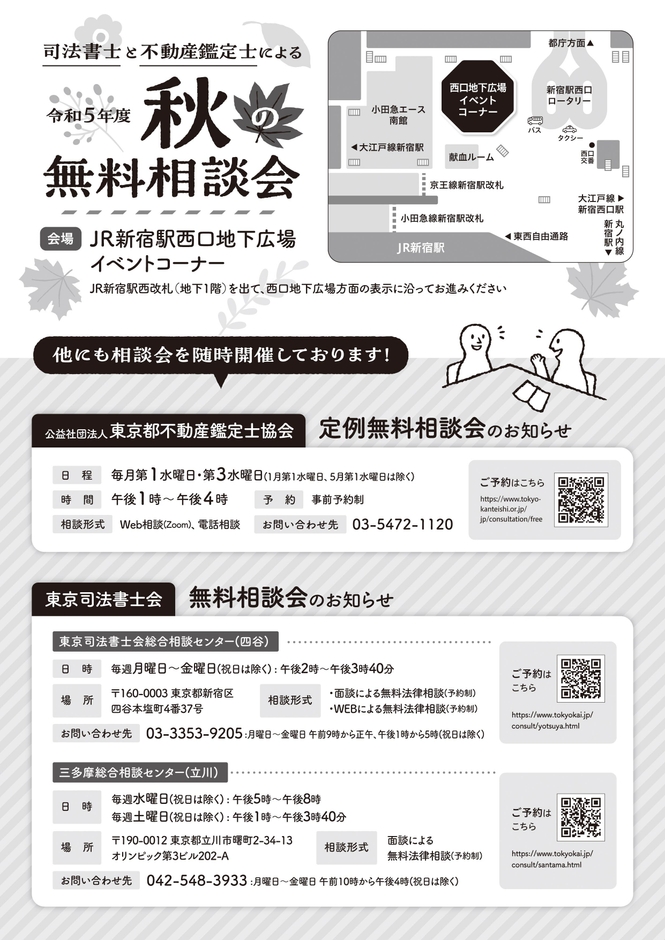 「令和5年度 司法書士と不動産鑑定士による秋の無料相談会」 (主催:東京司法書士会、公益社団法人東京都不動産鑑定士協会)