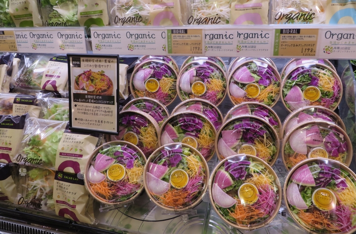 お出かけ・お仕事帰りに立ち寄っていただけるよう、有機玄米を使用した食べやすいサイズのミニ丼や、食品添加物に配慮した「素材にこだわったのり弁当」など、20種類以上のお弁当を品ぞろえいたします。また、有機素材を使用したラザニアや春巻き、ビオラル惣菜取扱店舗限定のリーフサラダを新発売いたします。