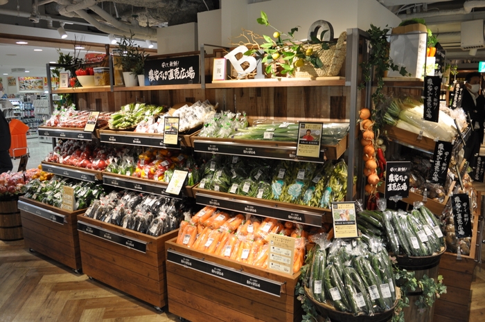 「農家さんの直売広場」では、和歌山県産を中心とした野菜・果物を品ぞろえいたします。安全・安心のニーズにお応えするため、有機JAS基準に適合した有機農産物や、有機原料を使用した「八ヶ岳ロケット農場のSUNSUNサラダ」を取り扱いいたします。