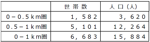 ・店舗から1㎞圏内は、大阪府平均と比較して0~10代、30~50代と3人世帯以上の構成比が高く、ファミリー世帯が多い地域です。