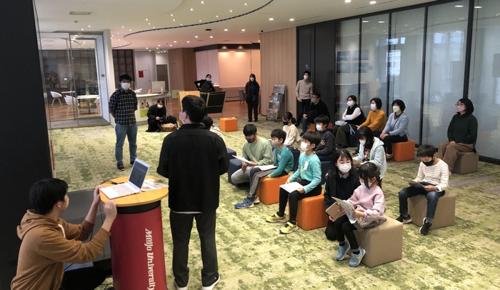 学生団体の「名城自然交流倶楽部」が12月17日、「苔テラリウムを通じてSDGsを知るワークショップ」を開催しました。10月にイオン八事ショッピングセンター(名古屋市昭和区)での開催に続き2回目となります。ナゴヤドーム前キャンパスの社会連携ゾーン「shake」で開催されたワークショップには、近隣の小学校から応募のあった生徒と保護者が参加。親子で楽しみながらSDGsについて学生たちからレクチャーを受けました。