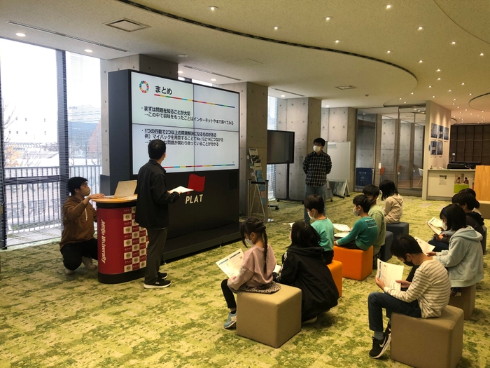 まず学生たちからイベントの目的などの説明があり、続いてSDGsの17項目について事例を交えながら紹介がありました。