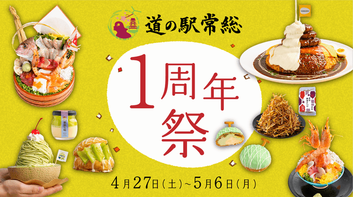 茨城・常総の魅力を発信する食のテーマパーク「道の駅常総」(所在地:茨城県常総市、運営:株式会社COLLECT)は、皆様にご愛顧を賜り4月28日で1周年を迎えます。そこで日頃の感謝を込めまして4月27日から5月6日まで10日間、周年祭を開催いたします。期間中は旬を迎えるメロンの大試食販売会やメロンスイーツ、お野菜の日替わり特売やお弁当の感謝プライス販売、期間限定メニュー、干し芋の詰め放題など各種イベントも用意しておりますので、ぜひこの機会にお越しくださませ。