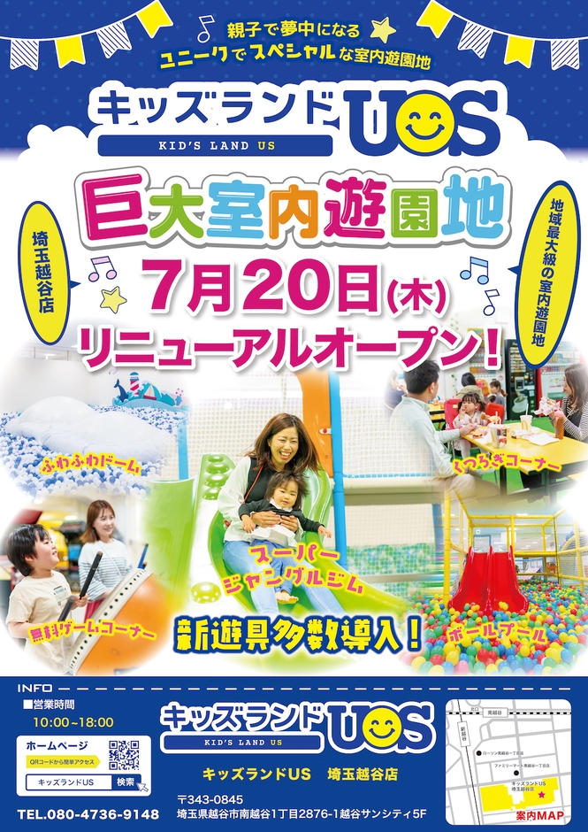 『キッズランドUS 埼玉越谷店』がリニューアルオープン! 7月21日から8月31日まで『夏休み限定3大イベント』を開催