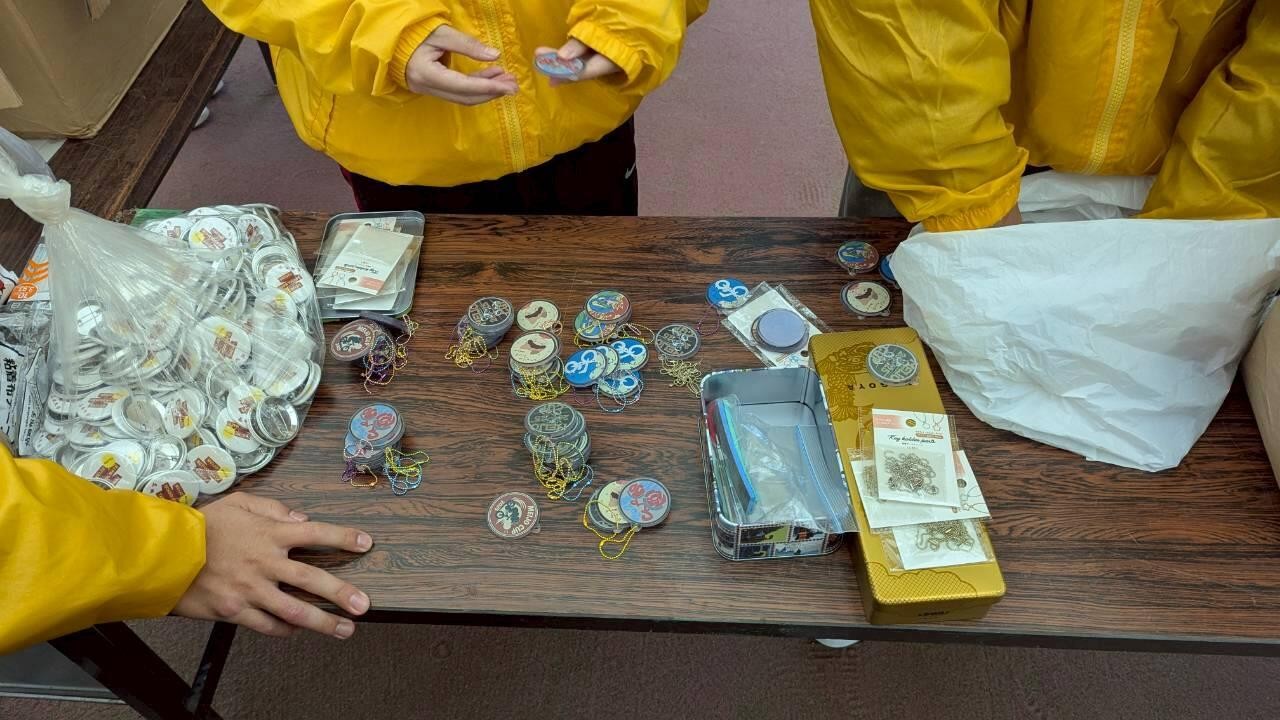16日当日は学生たちは午前6時半に会場入りしてリハーサルを行い、午前10時に競技がスタートすると、司会進行や選手たちの誘導、表彰などの運営に大忙し。レース中は「頑張れ、頑張れ!」と大きな声援を送って懸命に前に進む子どもたちを後押しし、ゴールするたびに拍手をして健闘をたたえていました。また、オリジナルのハンドタオルや手作り缶バッジなどの参加賞も多数用意され、来場者を喜ばせていました。