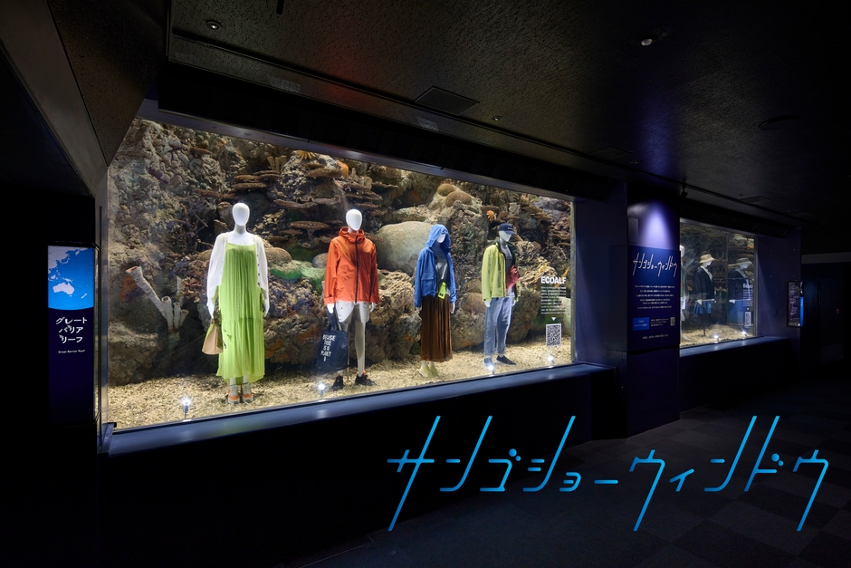 海遊館は2023年5月12日(金)~14日(日)の3日間、リニューアル工事中の「グレート・バリア・リーフ」水槽で、海洋プラスチック等を再利用して作られたファッションアイテムを展示する特別企画「サンゴショーウィンドウ」を開催しました。