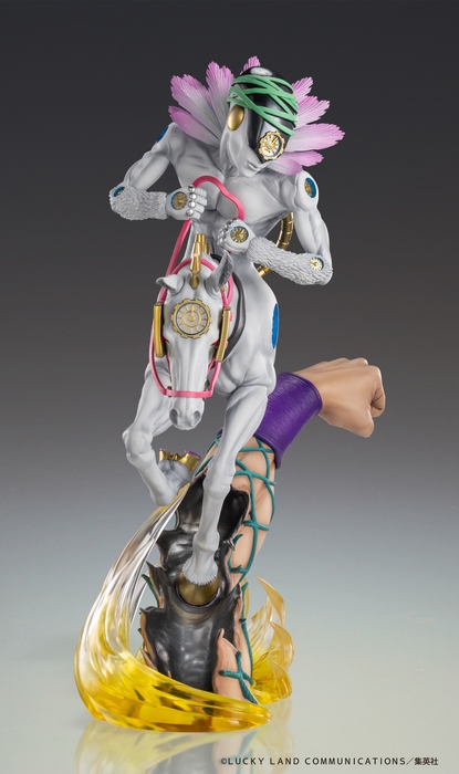徐倫のスタンド「S・F」の拳と繰り出される繊細な糸をイメージした台座に佇み、力強い眼差しを向ける徐倫!