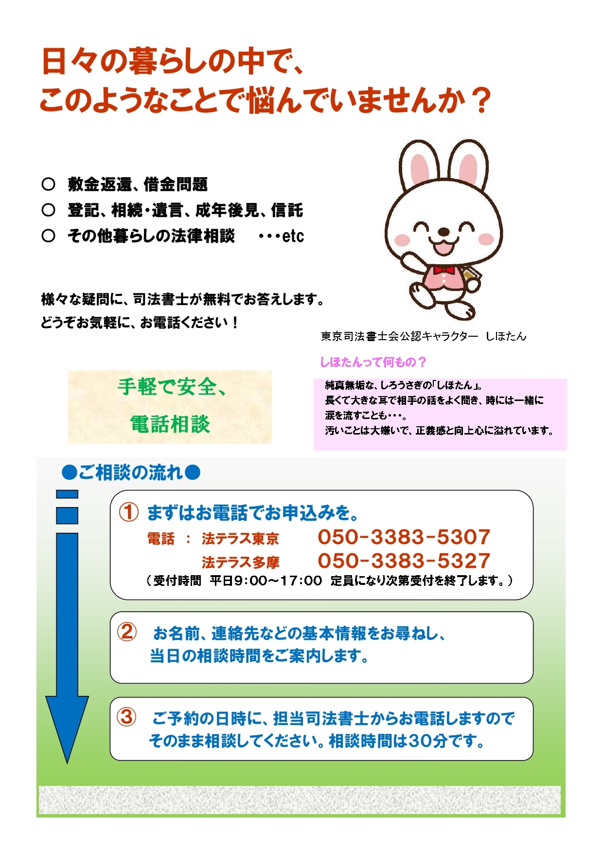 「法テラスの日」記念 司法書士による無料電話相談会