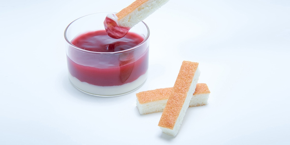和菓子の命である餡子。その新しいスタイルを模索し誕生したのが、カステララスク『SOU』です。『SOU』は、カステララスクを二層の餡ペーストにディップして餡子を楽しむカジュアルな餡子菓子。まずは餡ペーストから、途中でレアチーズの層と混ぜ合せる事で味の変化をお楽しみいただけます。